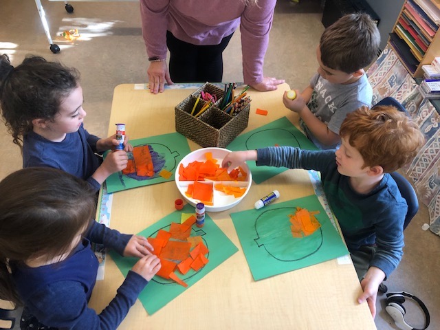 On Monday we continued to learn about printing and practiced the lowercase letter ‘f’. Later we made pumpkin art and then went to the pumpkin patch!! The kids were so excited to ride the school bus and pick out a pumpkin.